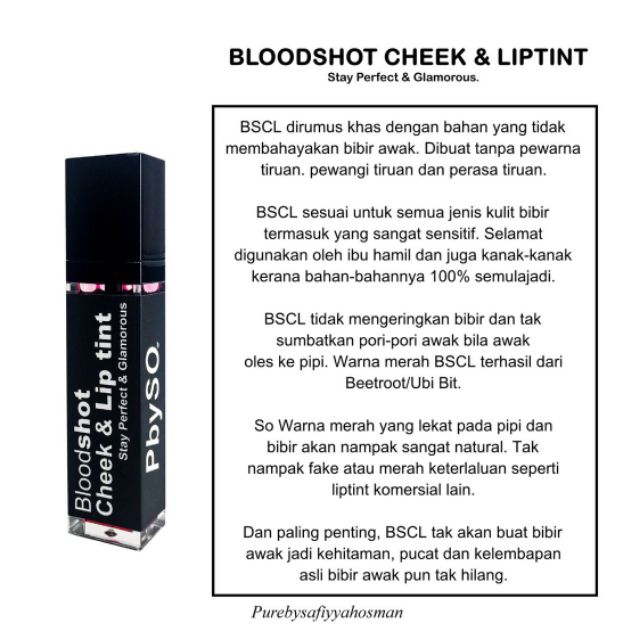 Bloodshot Cheek Liptint Memerahkan Bibir Pipi Secara Semulajadi Shopee Malaysia