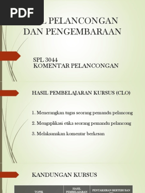Personaliti pemandu pelancong alam semula jadi. Menghadiri dan lulus Kursus Asas Pemandu Pelancong untuk mendapatkan lesen Pemandu Pelancong Bandar. 145 Pelancongan Selain dari sektor infrastruktur industri asas tani dan from HS MISC at Northern University of Malaysia. Dec 17 2018 Kerjaya sebagai pemandu pelancong semestinya sesuai untuk seseorang yang suka melancong atau mengembara suka berinteraksi dengan orang ramai pandai menyusun atur perancangan tahu selok belok persekitaran seperti tempat bersejarah atau kawasan tumpuan dan sukakan ilmu pengetahuan terhadap sesuatu perkara.